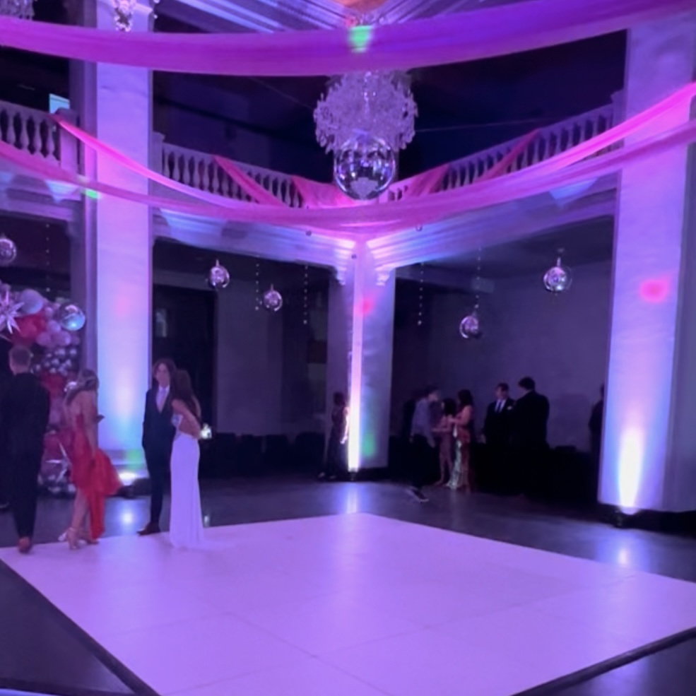 black white dance floor with uplights.HEIC